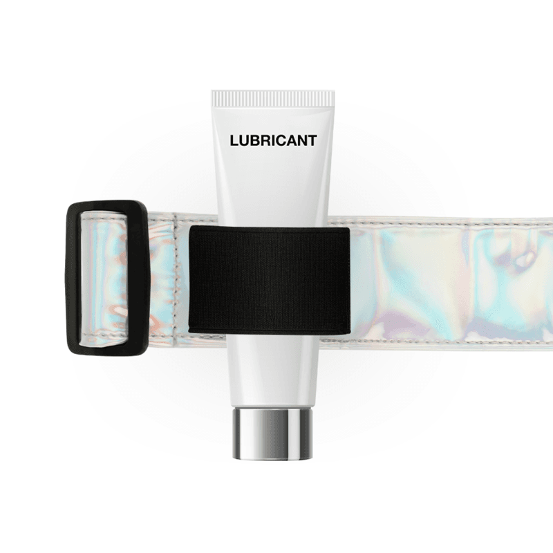 El arnés dispone en los laterales de una goma elástica que podrá ser utilizada para colocar el control remoto “Watchme”, un bote de lubricante, aceite o lo que prefieras. Este elástico está colocado a la altura de la cadera, a ambos lados del cuerpo para que tanto diestros como zurdos puedan utilizarlo cómodamente.
