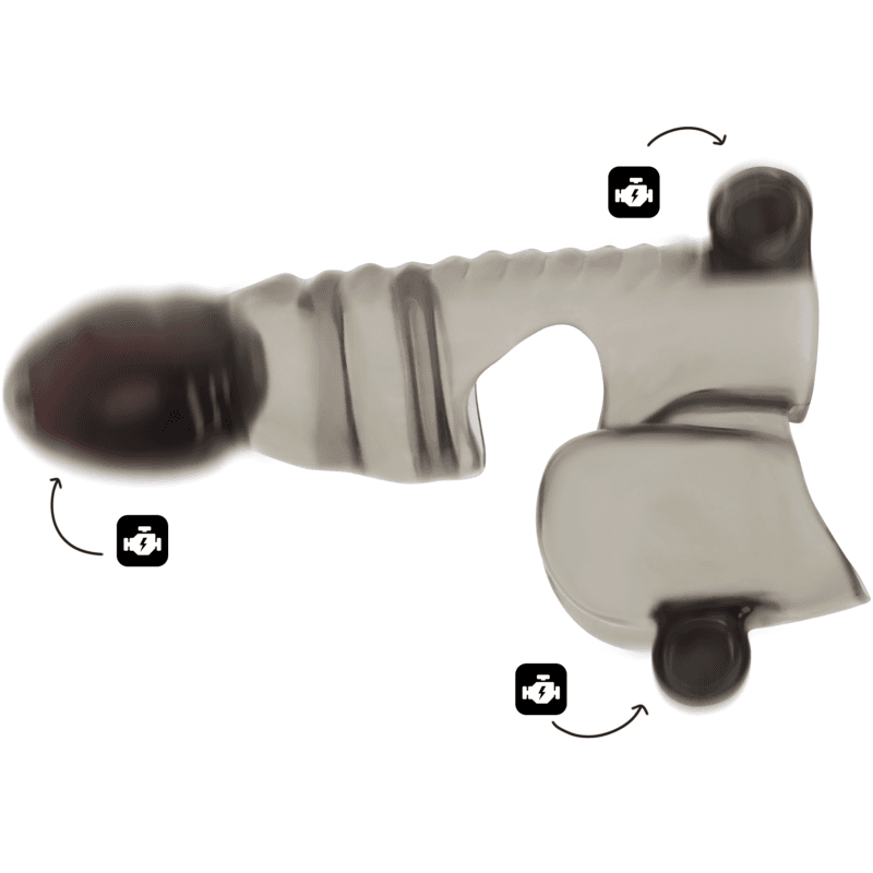 - Funda para pene y testículos con… ¡3 balas vibradoras!